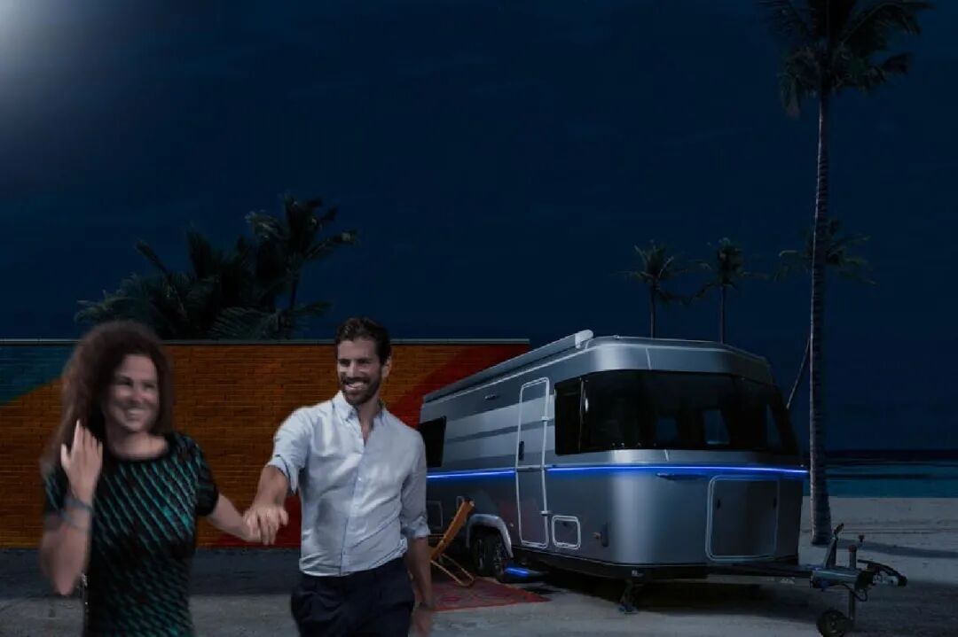 车身厢体的外部设有一圈灯组,额外的LED蓝色灯带给房车增添了一丝神秘感,极具标识性的同时独具美感;