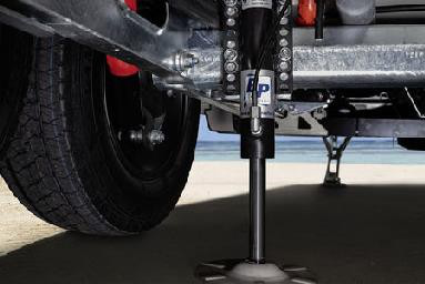 该车配有自调节液压提升支撑系统,在驻车时可通过遥控器或控制面板操作车辆调整至水平位置;