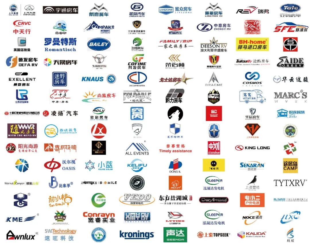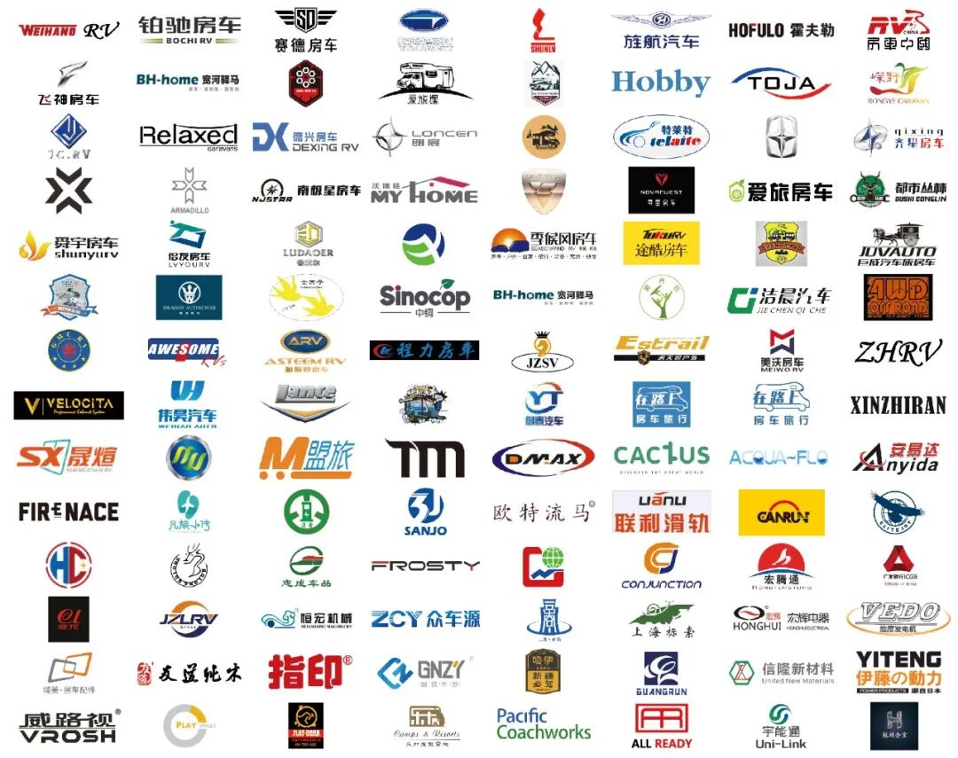 配件企业/房车露营旅游装备企业:电小二、喜马拉雅帐篷、欧绅帐篷、悠旅户外、宽睿木屋、上海声达、天虹之星、深圳宏腾通、泓晟达发电机、风达锂电、醒睿科技、马力电源、康润房车、广润厨卫、杭州合易、诺克发电机、上海汇缔、智通新能源、南京小蓝、志成车品、步林户外用品、山东路营汽车、恒宏机械、达壹锂电、太仓京和机电、威路视、上海标索、弗罗斯特电器、欣之然、友道木业、博隆实业、大椿机电、维度发电机、途乐邦户外天涯同行、天马车辆配件、朗顺塑料容器、沃尔视OASIS:智慧房车&卫星电视天线、壹万房车、宏辉电器、三乔智能科技、仙人掌户外、欧特流马、丽世遮阳、德艺凯麒房车家具、信隆新材、晟煊房车门窗、亿瑞电器、嘉欧电子、众车源电源、国能实业、聚富锁具、库宁机械制造、丽商光电、联利滑轨、安易达复合气瓶、威势汽车冷暖设备、弛隆新能源、速旺汽车配件、新途居文化旅游、宇能通能源、中国房车配件及户外用品联合体、成都房车露营自驾旅游协会、指印水电桩、科讯佳、荣津设备、愚工户外、上海营络、成都棕榈世界房车露营地等诸多房车配件/露营装备/自驾游相关行业。
