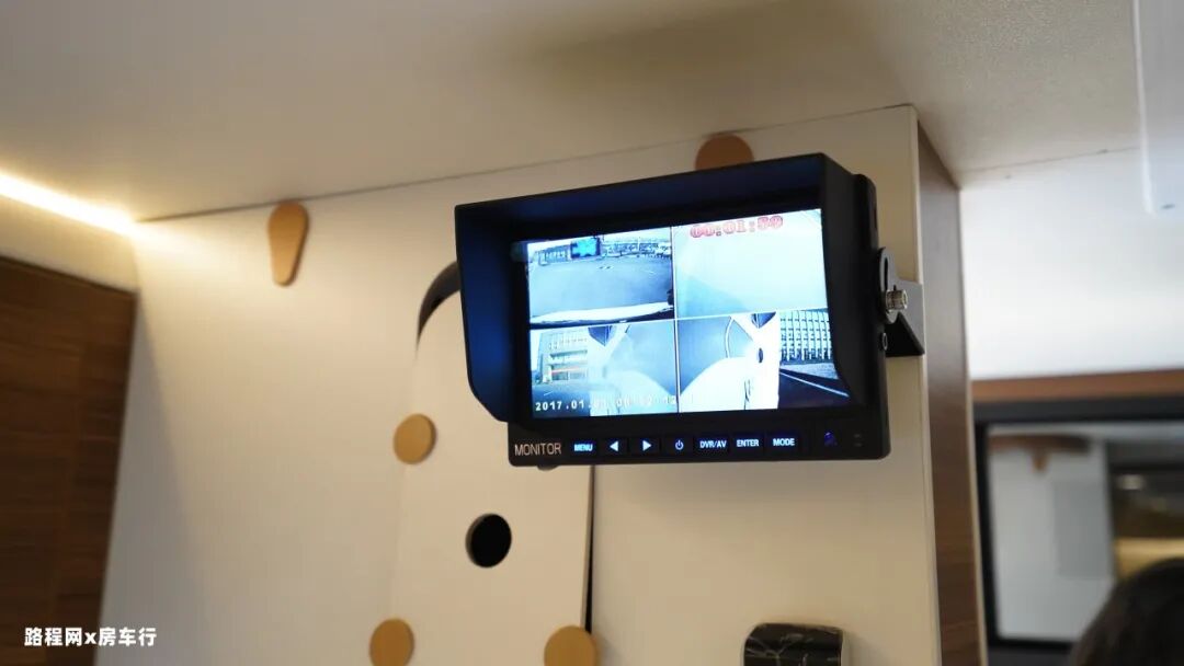 吧台上方看似简单的“隔板”暗藏玄机,内含下拉隐藏式电视机构和21寸车载电视,娱乐休闲功能不可或缺。
