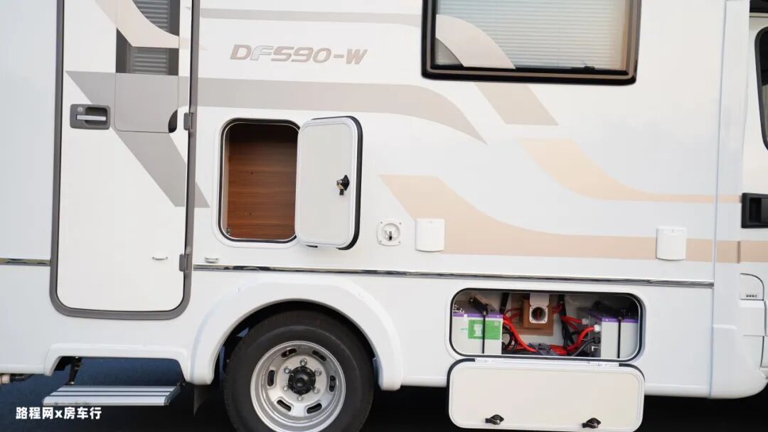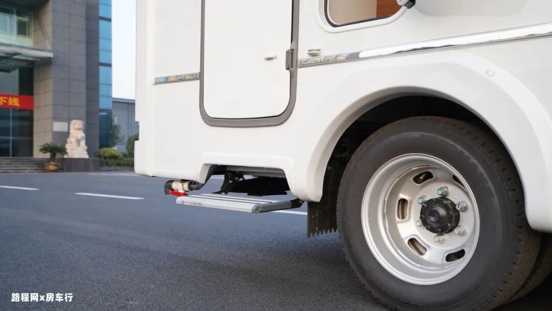 后上门的设计让整车的内饰布局更通透,电动踏步方便老人小孩上下车。车门旁边设有储物舱和注水口。