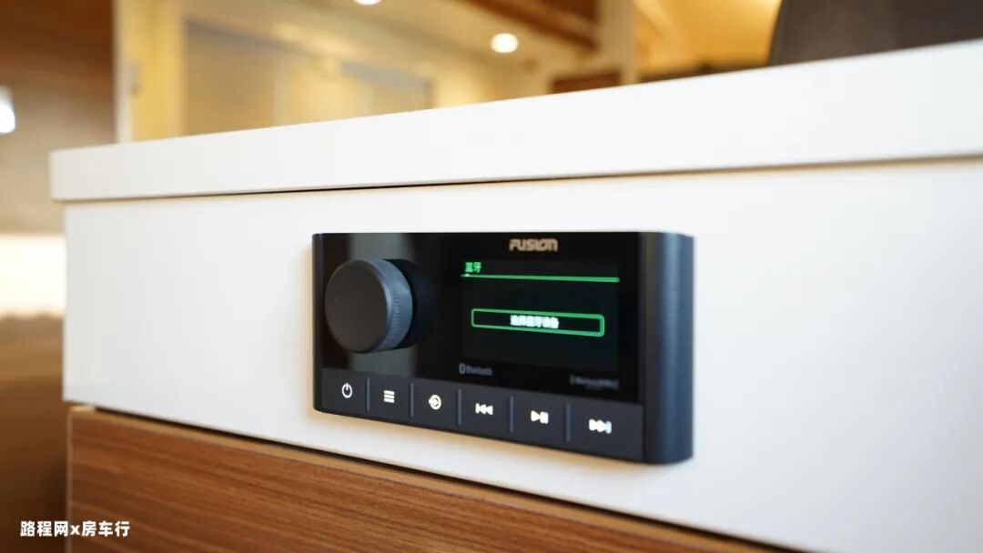 而在进车门的另一侧,配有宽敞的吧台,吧台下方是多层储物抽屉及富声音响,必要时还能将拓展桌板展开使用。