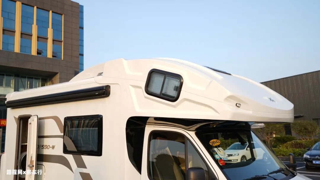 车型外观上,5995x2450x3190 mm的尺寸可上蓝牌C照驾驶。尽管车型尺寸较大,但得益于车身玻璃钢板四层复合三明治结构轻质板及XPS挤塑板+环氧镁铝合金板夹芯层的设计,使整车符合轻量化设计需求,整车总质量仅有4490kg,可负载740kg。