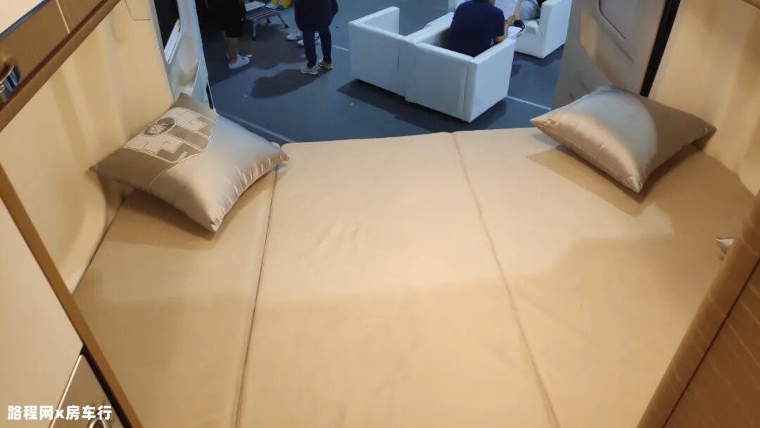 尾部横置双人床的尺寸达到了2050x1350mm,仅从尺寸来说基本可以与C型车媲美,内部空间充足,可满足多人睡眠的需求,夜间睡眠也会有很舒适的体验;
