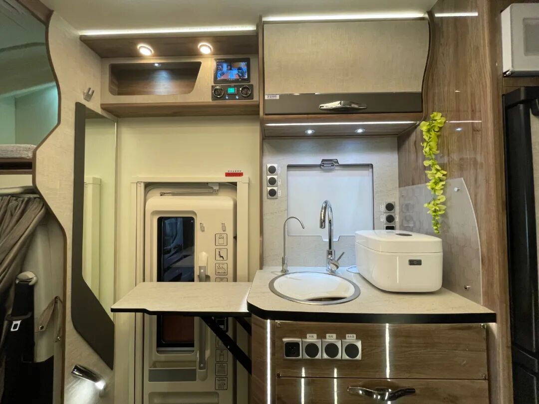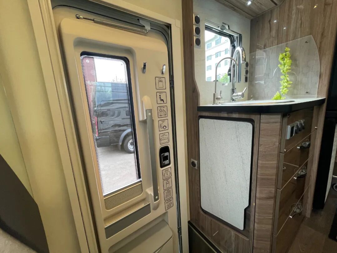 主门旁边便是车内厨房区所在,可在车内单独烹饪,也可搭配户外厨房使用;