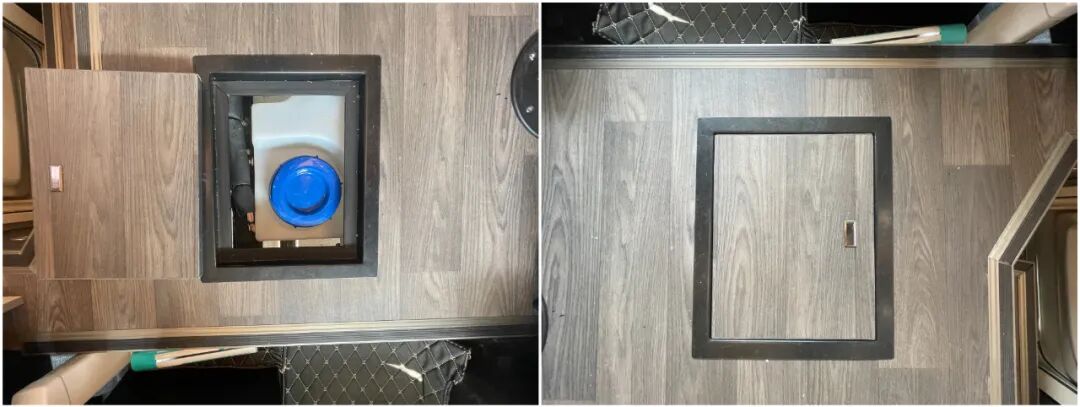 地板采用德国朗仕房车专用地板革,并配有水路检修地窗方便日常检查维修;
