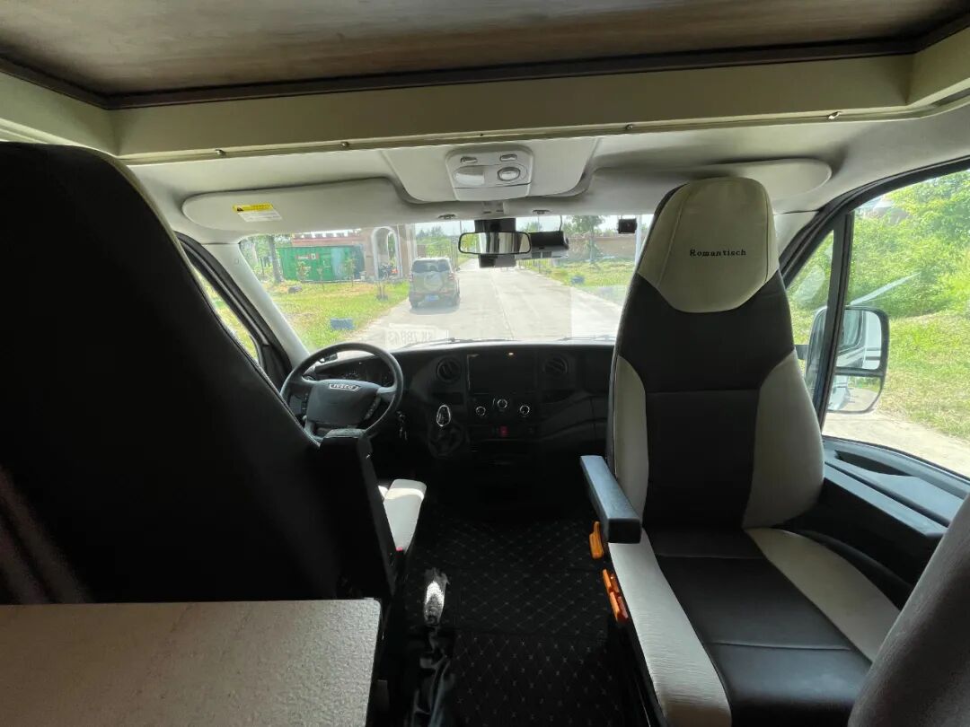 驾驶舱内空间充足,视野良好,可以很准确的观察到前方路况;内饰方面,驾驶舱的底部铺设有地毯,主副驾驶位配有悬浮座椅,并采用包覆处理,带有扶手,有效提升行车时的乘坐舒适度;副驾驶座椅可旋转,并提供了单人副驾驶位、双人副驾驶位供选择;