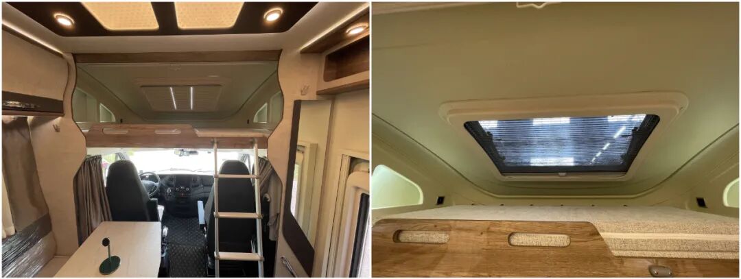 额头床共有抽拉/翻转两种设计可供选择,本次小编为大家展示的是抽拉式;额头床内饰采用ABS整体开模一体成型内饰件,内部尺寸为2000x900mm,空间充足,满足多人睡眠的需求;床头两侧设有储物格方便放置小件物品,同时配有充电插口方便睡眠休息时给手机、平板等电子设备充电;顶部设有天窗,两侧外推窗进一步加强内部采光、通风,睡起来不会压抑;
