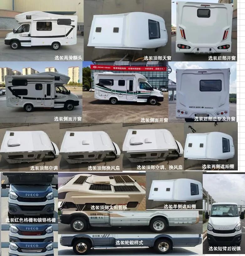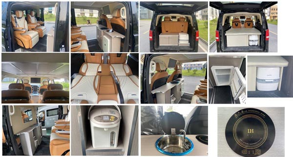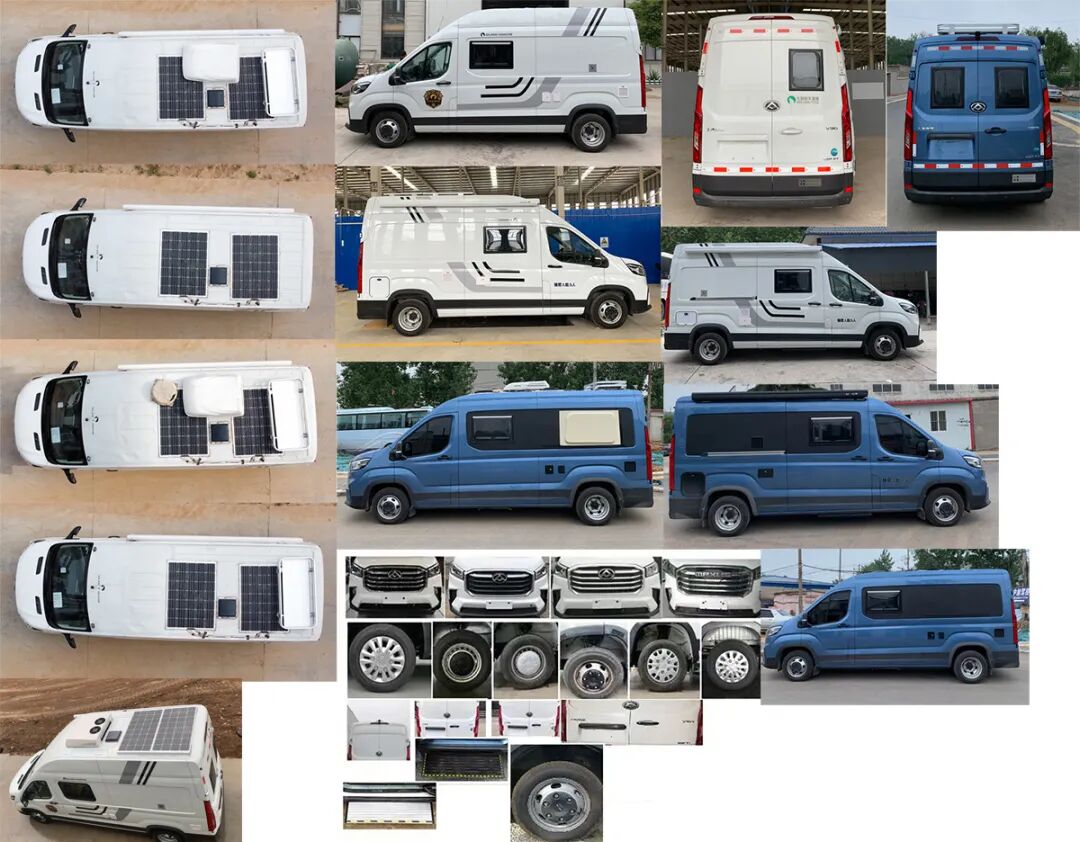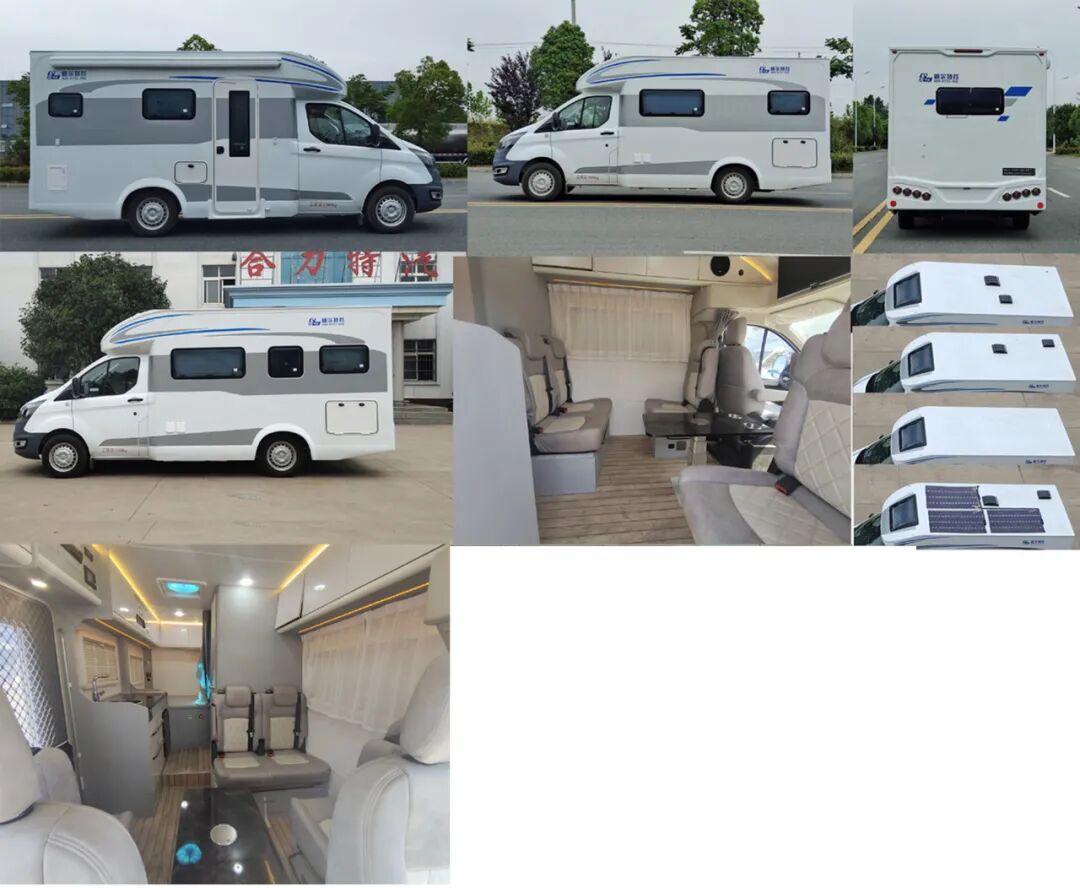 选装换气扇,天窗,太阳能板,遮阳篷。车内设有桌椅,睡具,炊具,储藏器皿,卫生设施及必要的照明和空气调节等设施.车辆后部离地高度为400mm。ABS系统控制器型号:EV5051,生产厂:博世汽车部件(苏州)有限公司;该车可选装ETC车载装置。选装ECU限速(限最高速100km/h)。