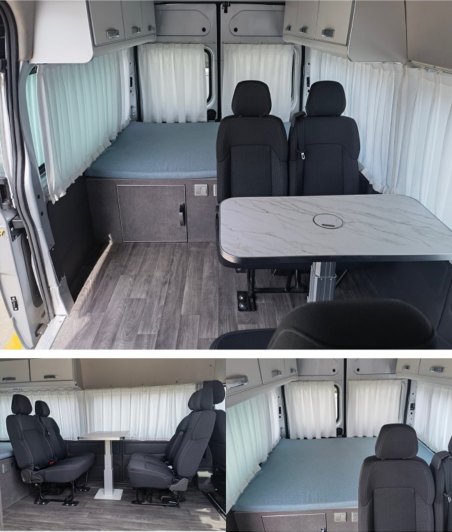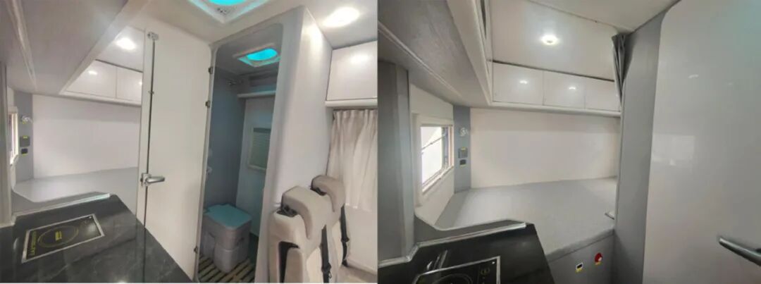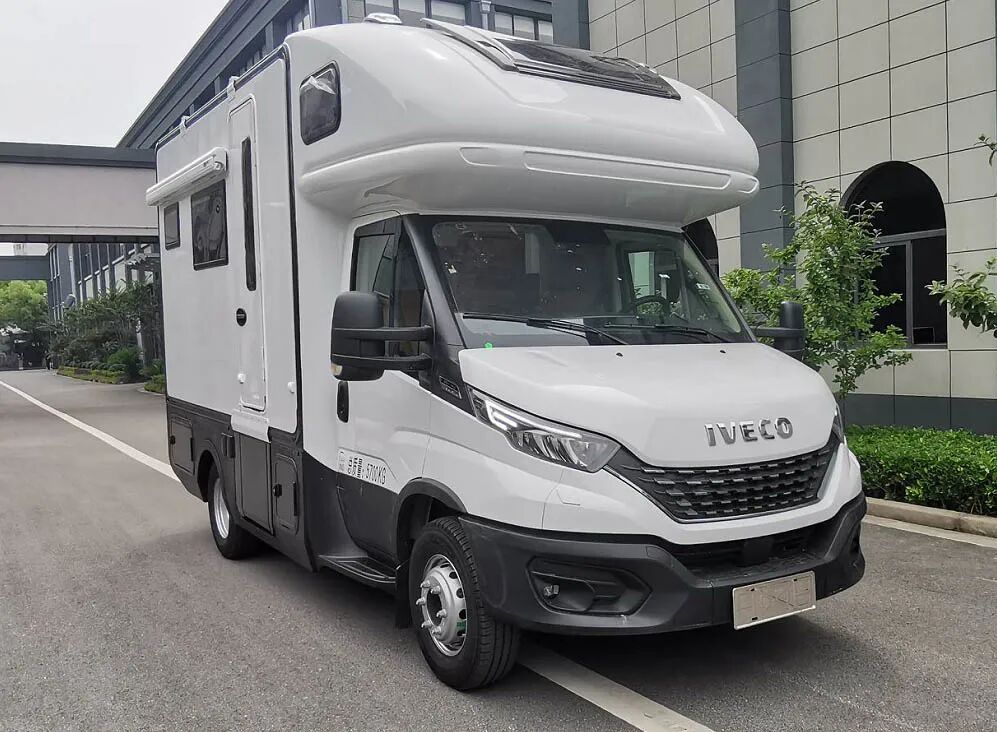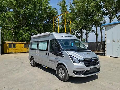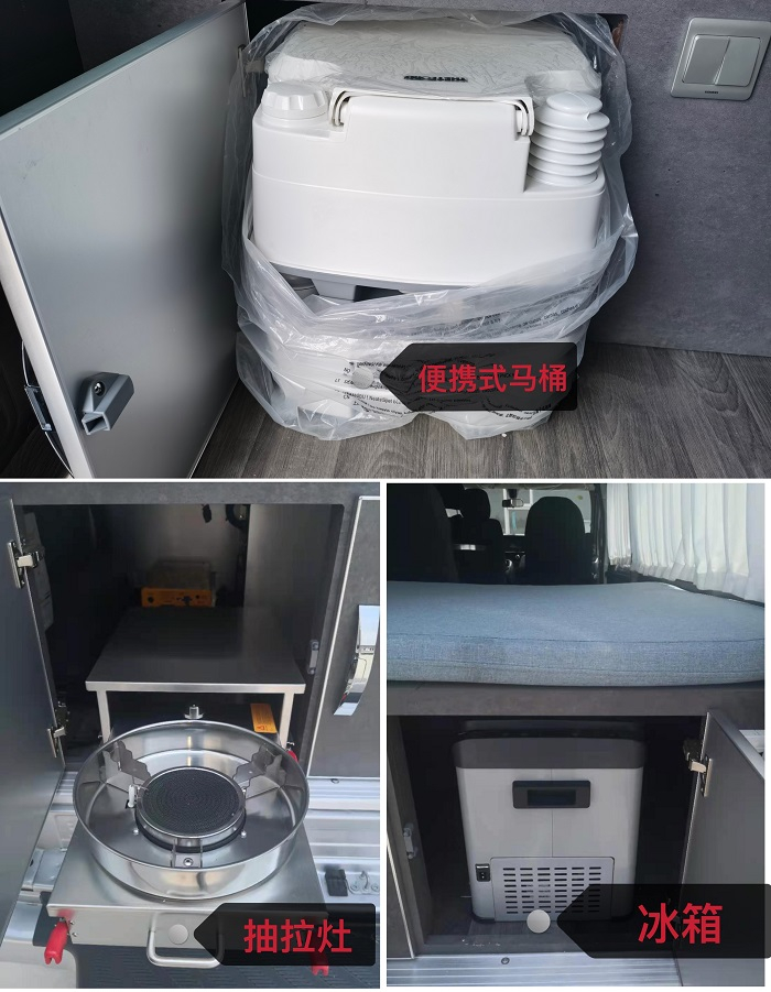 1、顶部封闭不可开启;2,顶部无选装时对应高度为2360mm,顶部选装太阳能板时对应高度为2390;3,选装遮阳棚,电动踏步;4,配备冰箱、厨具、座椅、床铺、卫生设施等旅居生活专用装置,用于旅行露营;