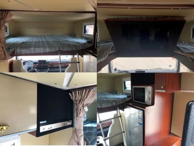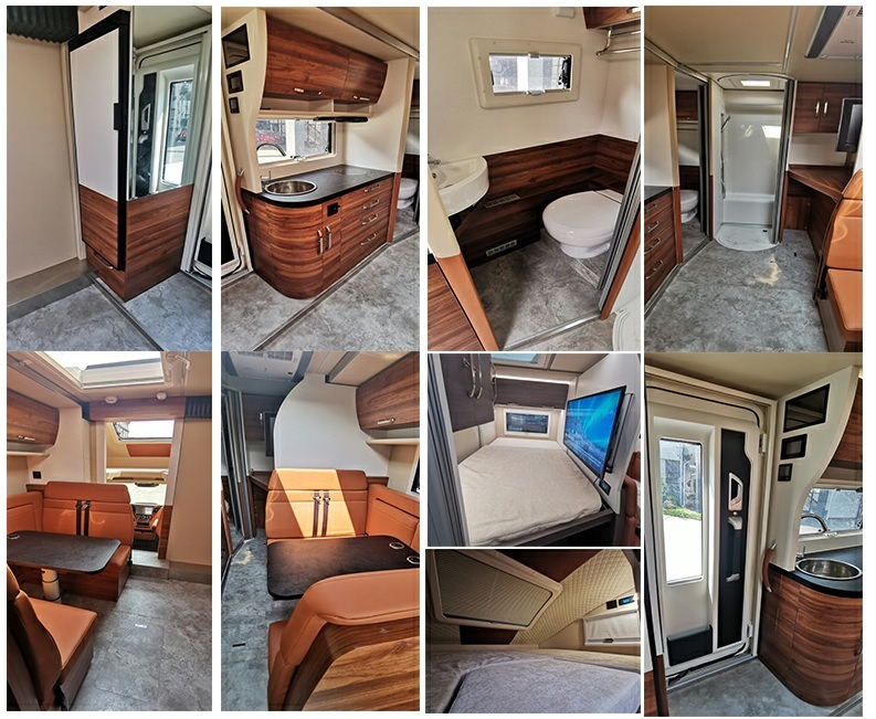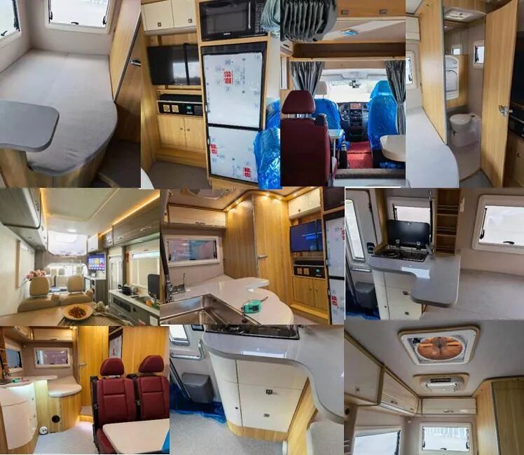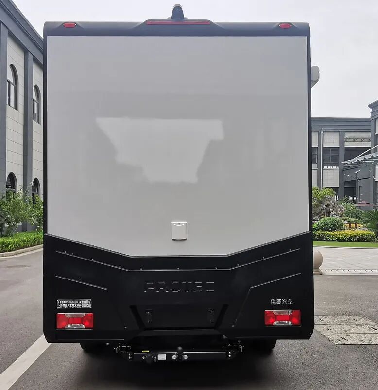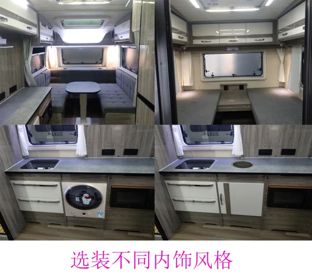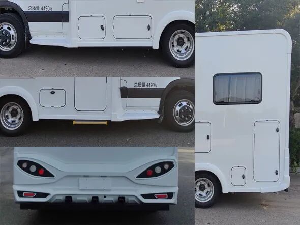 厢体顶部封闭不可开启,随底盘选装电动侧踏步、前格栅、LED灯、日间行车灯、轮圈、轮饰盖、后尾标、前雾灯、后摄像头.选装排风扇,顶置空调,顶置行李架,卫星天线.选装多种车内床铺布局,车内设有桌椅,睡具,炊具,储藏器皿,卫生设施及必要的照明和空气调节等设施.ABS型号:ABS 9,ESP9.ABS生产企业:博世汽车部件(苏州)有限公司,博世汽车部件(苏州)有限公司.
