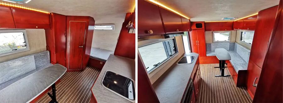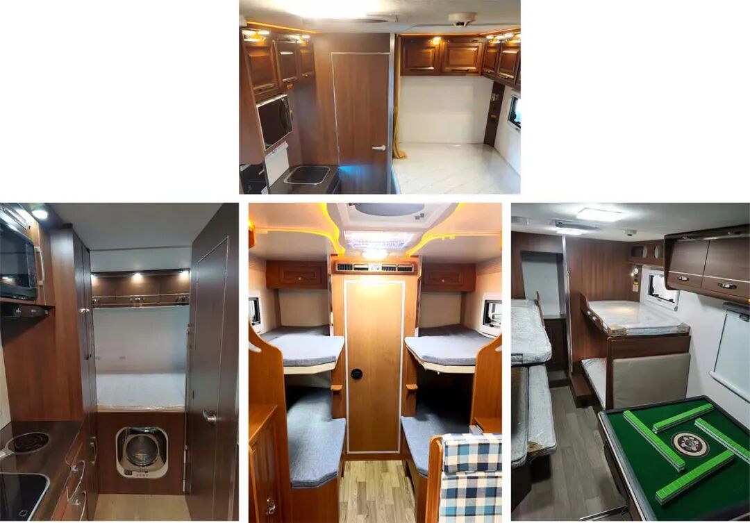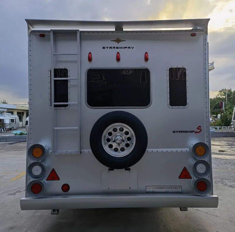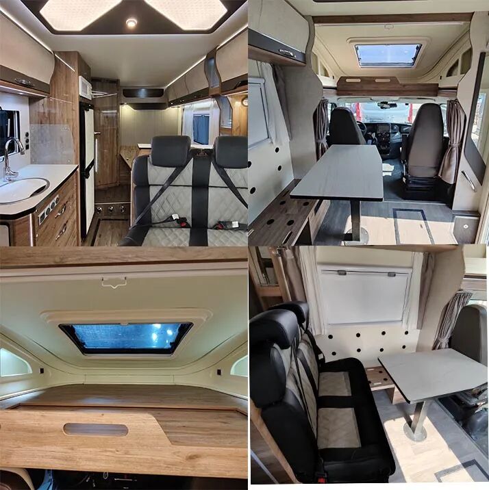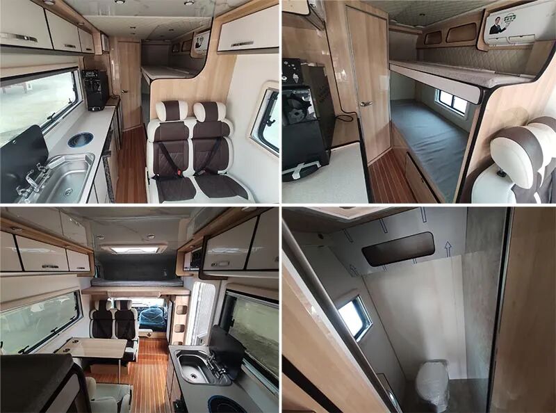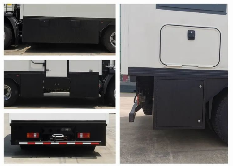 厢体顶部封闭不可开启,随底盘选装电动侧踏步、前格栅、LED灯、日间行车灯、轮圈、轮饰盖、后尾标、前雾灯、后摄像头.选装排风扇,顶置空调,顶置行李架,卫星天线.选装多种车内床铺布局,车内设有桌椅,睡具,炊具,储藏器皿,卫生设施及必要的照明和空气调节等设施.ABS型号:ABS 9,ESP9.ABS生产企业:博世汽车部件(苏州)有限公司,博世汽车部件(苏州)有限公司.