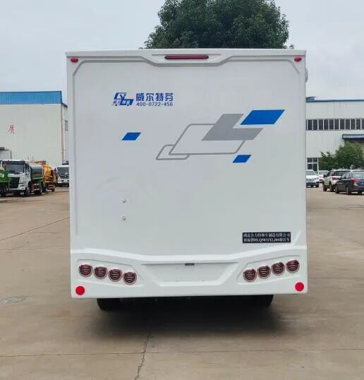 该车配备冰箱、厨具、卧具、卫生设施和旅居设施装置,用于旅居宿营.侧防护和后防护为整体式车身替代,侧防护和后防护离地高度分别为:320mm和450mm.ABS型号/生产企业:0 265 242 ***/BOSCH.发动机最大净功率:132kW.该车型可选装ETC车载装置.该车型在驻车状态下,车辆左右两侧可拓展使用.