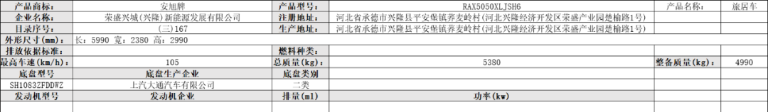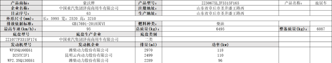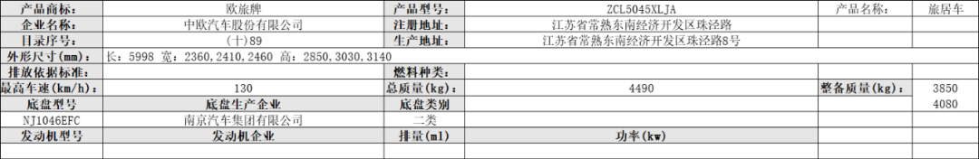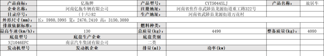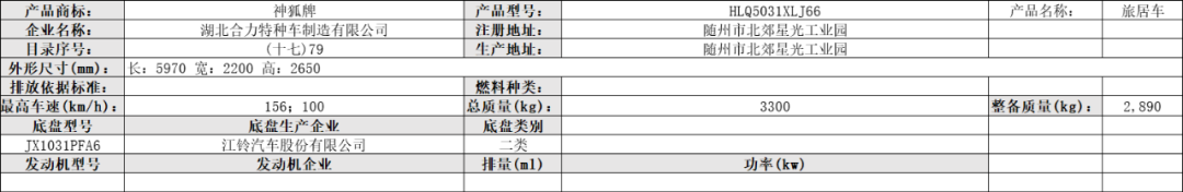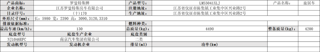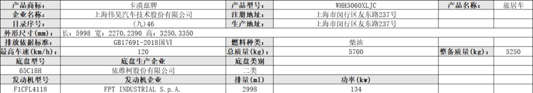 仅选装底盘的3280轴距,该车型可选装ETC车载装置。专用功能及装置:该车装配睡具,炊具,卫生设施等设备,用于旅居宿营。发动机WP3NQ160E61的净功率为114kW,发动机D25TCIF1的净功率为105kW,发动机WP2.3NQ130E61的净功率为92kW。当发动机为WP3NQ160E61,D25TCIF1时,VIN为:LZZ1BAFB×××××××××(3280轴距);当发动机为WP2.3NQ130E61时,VIN为:LZZ1BAEB×××××××××(3280轴距)。