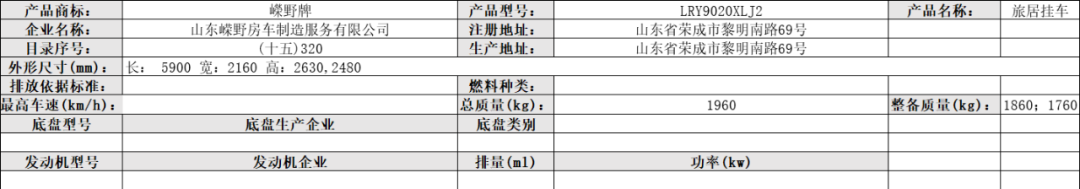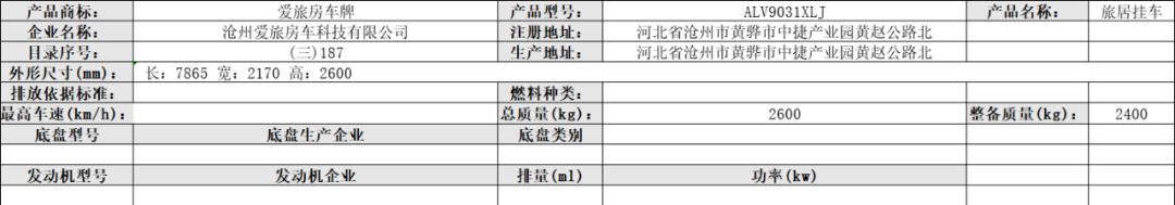 中置轴挂车的牵引杆深入量(mm):35,中置轴牵引杆连接器最大负荷(kg):150;该车为非乘用车,行驶状态中不载人;样车安装车顶空调时外形尺寸高度为2630mm,不安装车顶空调时外形尺寸高度为2480mm;外形尺寸长/轴距/后悬对应关系为(mm): 5900/3915/1950;车内部安装柜子,睡具,卫具,炊事设施,储藏等专用装置,用于停车后提供娱乐与休闲;
