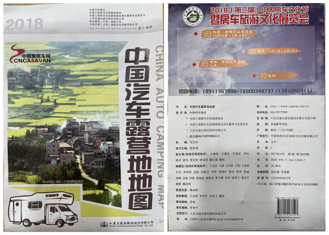 《中国汽车房车露营地地图》是由全国工商联汽车经销商商会、全国工商联汽车经销商商会房车露营专业委员会、人民交通出版社股份有限公司、友程房车(上海)有限公司/路程网x房车行联合编制而成,精确收录全国数百个已开放的汽车房车露营地(包含露营地地址及联系方式等内容),是国内最具权威性及影响力的行业刊物。