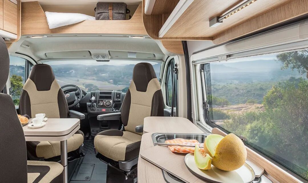 整车核载四人,内部标配四个系安全带的座椅,确保驾乘人员在旅途中的安全。停驻车时,主副驾驶座椅旋转后可以与桌子配合,形成用餐或会客区,合理利用空间,