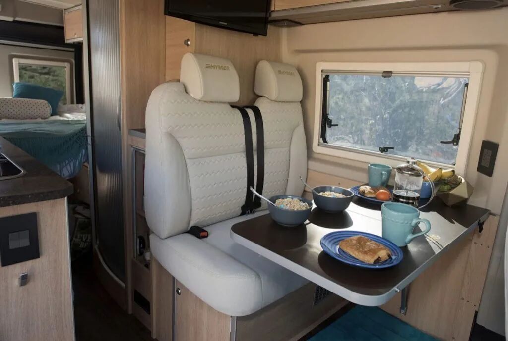 经典的布局可以睡两到四个人,比较适合情侣或者三口之家。除了睡眠区外,这款房车还设有带可折叠桌子和设备齐全的厨房区。
