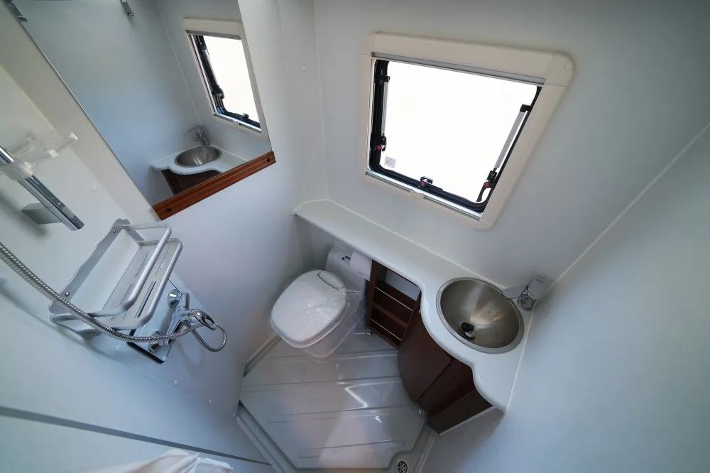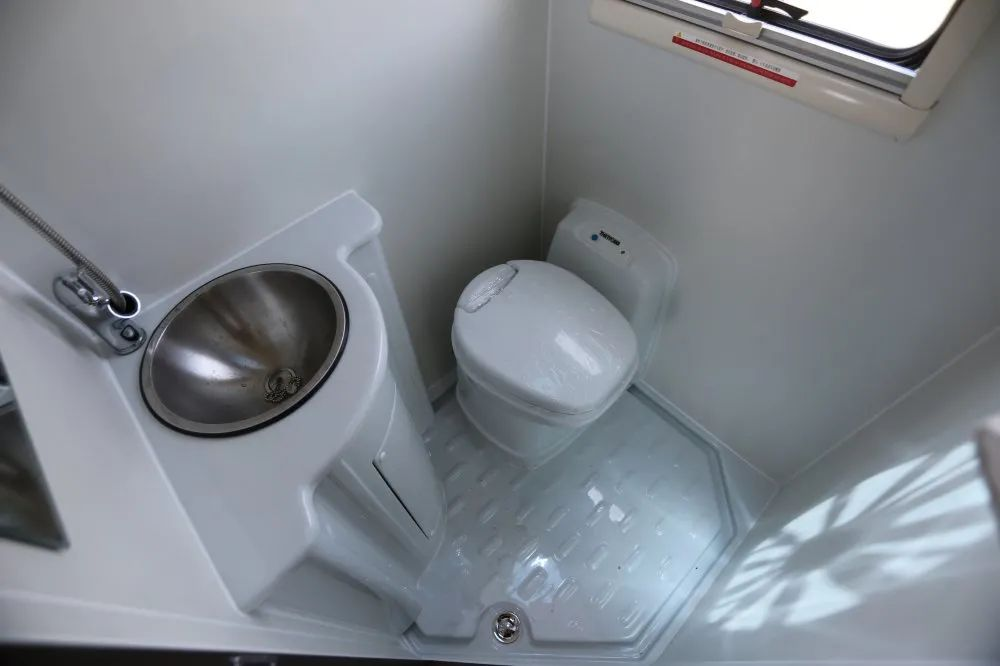 ● 干湿一体卫生间内置塞德福德C200专用坐便器,卫生间独立淋浴花洒、卫生间面盆+水龙头。14升的专用电热水器,210升的净水箱和60升的灰水箱。