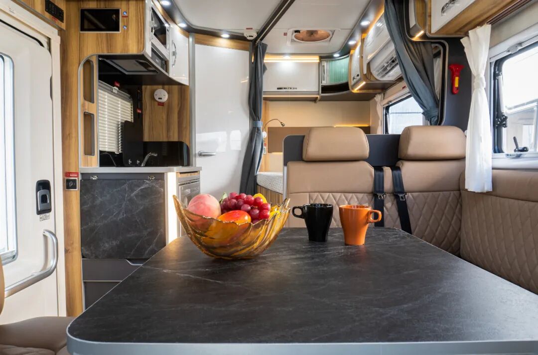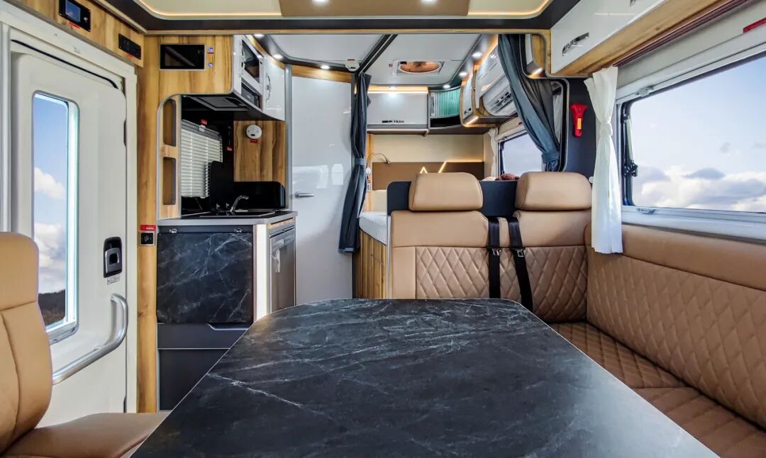 生活舱内设有独立厨房区,位于车内右侧中部的位置;
