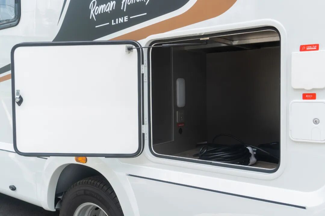 外置储物舱同样具备,新星罗马假日T600风尚款在车身外部设有三个独立储物舱,分别位于尾床下方(内设LED照明灯+电源插座)与底部裙边的位置,储存空间丰富;