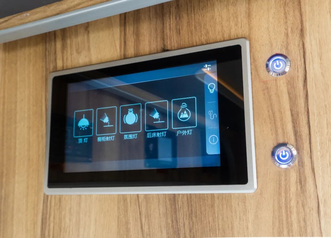 另外,乘客主门侧方设有生活舱总控集成面板,方便对车内水电进行监测、控制,日常使用起来方便不少;