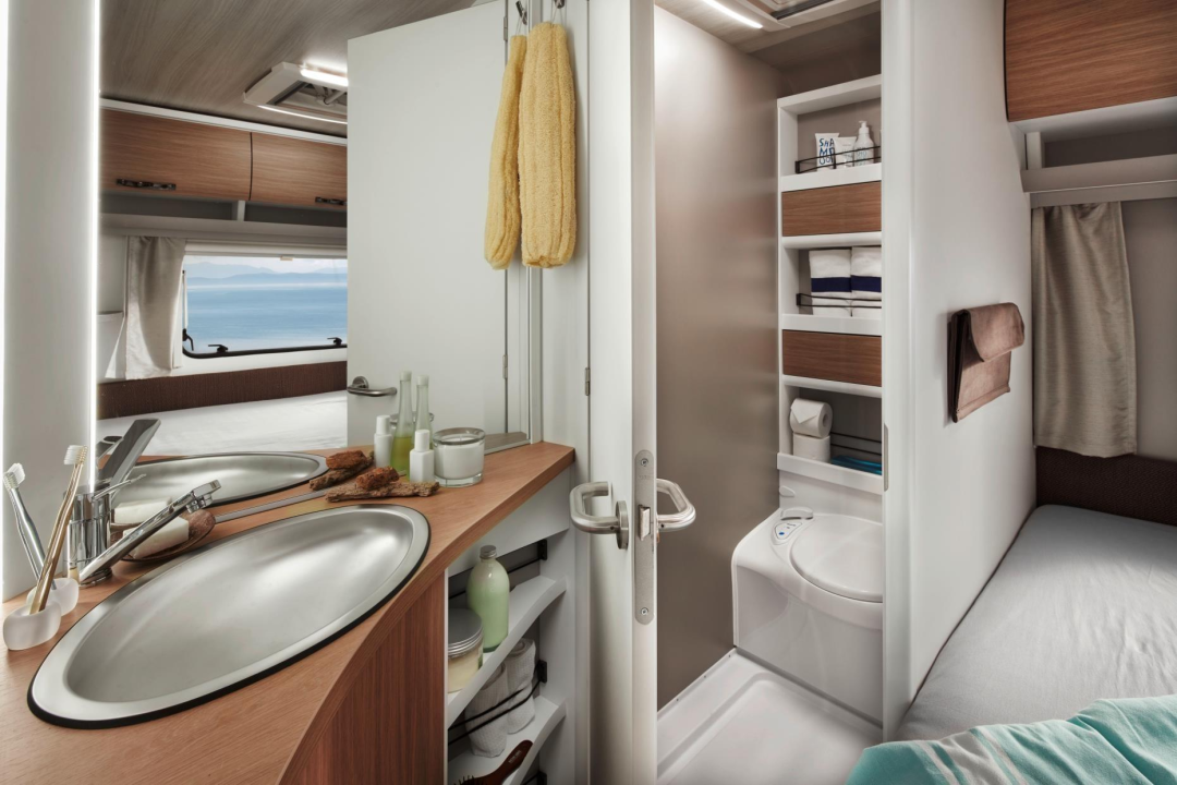 ● 卫生间干湿分离,配有设施齐全的卫生设备,布局合理。50升的净水箱和22升的灰水箱。