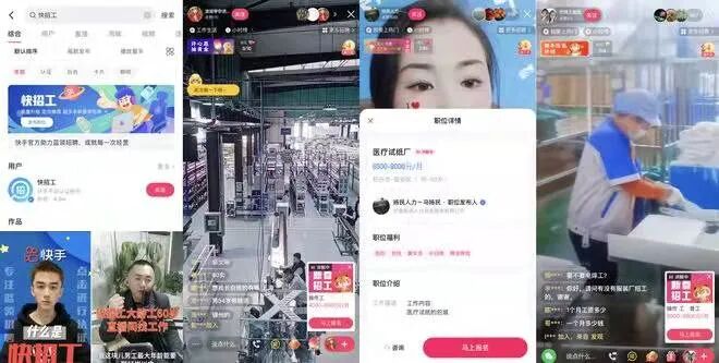而且快手的下沉用户和蓝领群体大部分重叠,C端流量优势显而易见。很多招聘APP都没有直播这个先天优势。快手可以说是依托既有优势,低成本拓展了一个新业务。