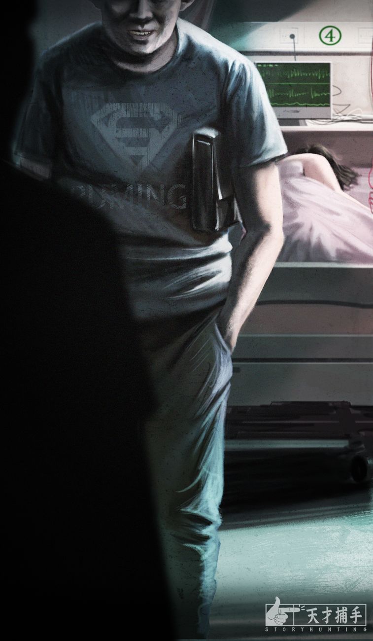我担心他威胁小颖,假装观察监护仪指标,靠近偷听。