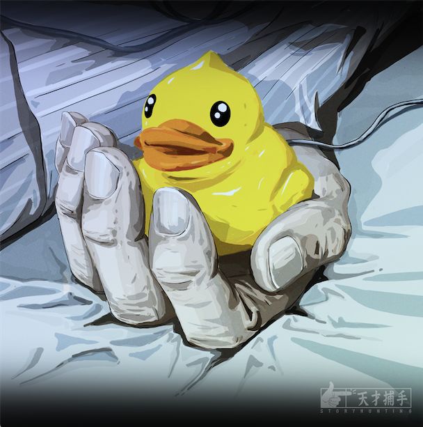我回过头,看到那个系着线的小黄鸭倒在凌乱的病床边上。