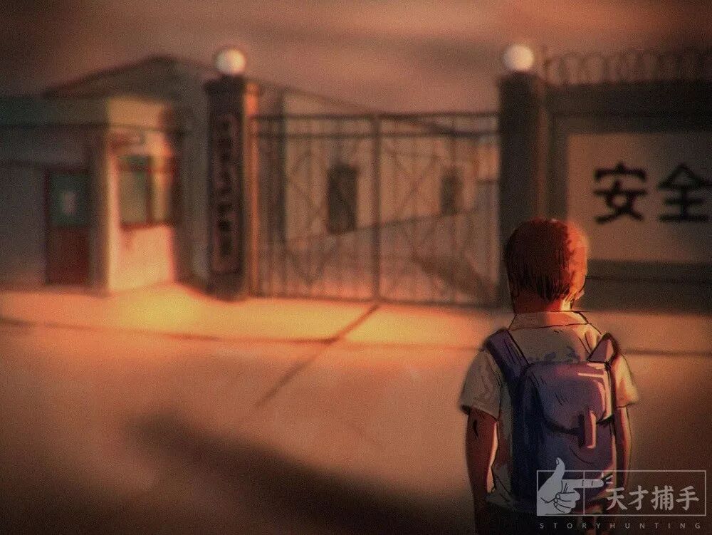 其中一个是他出校门,母亲在马路对面看着他,一直跟着,却没走上去和他说话。