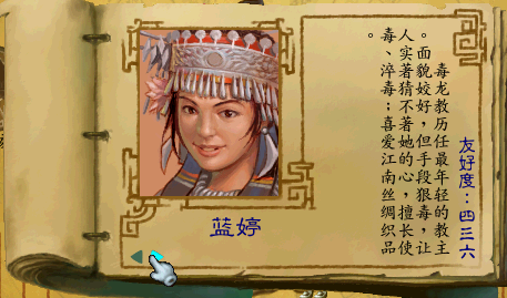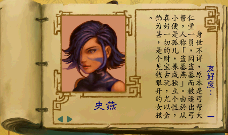 游戏中设定为“天下第一美女”,在武林群侠传片头曾经出现过,但是在游戏中却不见踪迹。没有任何事件可以触发关于他的剧情,多年来一直让玩家们耿耿于怀。