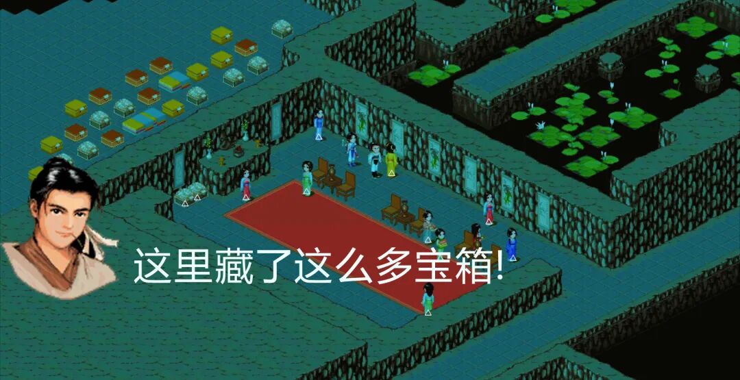 DOS版本中能看到有大量的财宝,但是玩家却走不过去。到了《仙剑奇侠传98柔情版》的时候这些箱子都不见了,而在后面出现了一条密道,可以拿到不少的极品道具。