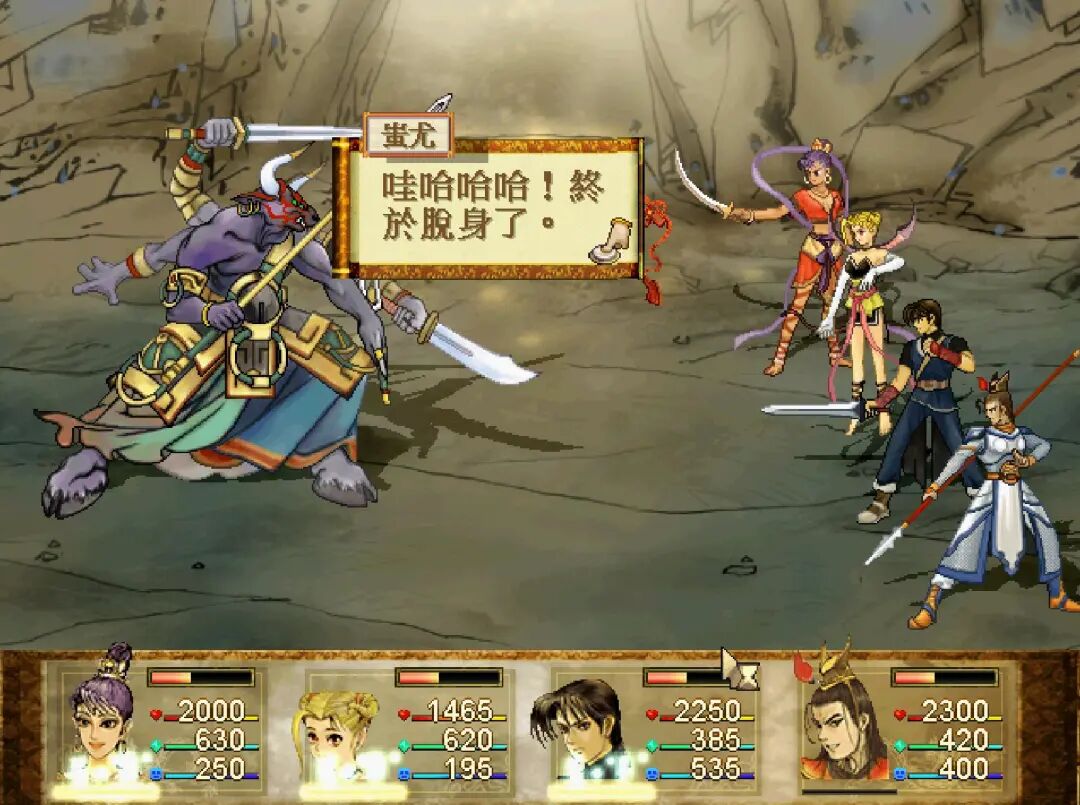 蚩尤,在没有拿到DOMO的阿猫阿狗之前最好不要挑战,要不然即使打赢了也是惨胜。这应该是《轩辕剑》史上最强大的BOSS之一。