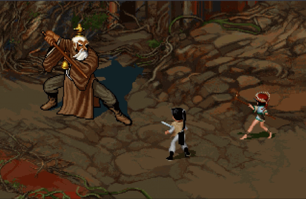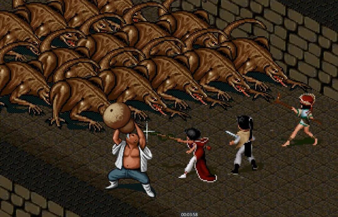 游戏中最强的攻击手段,并非是“天罡战气+醉仙望月步”,而是赵灵儿的“天罡战气+梦蛇+双龙剑”,或者是阿奴的“天罡战气+玄冰宝刀”。