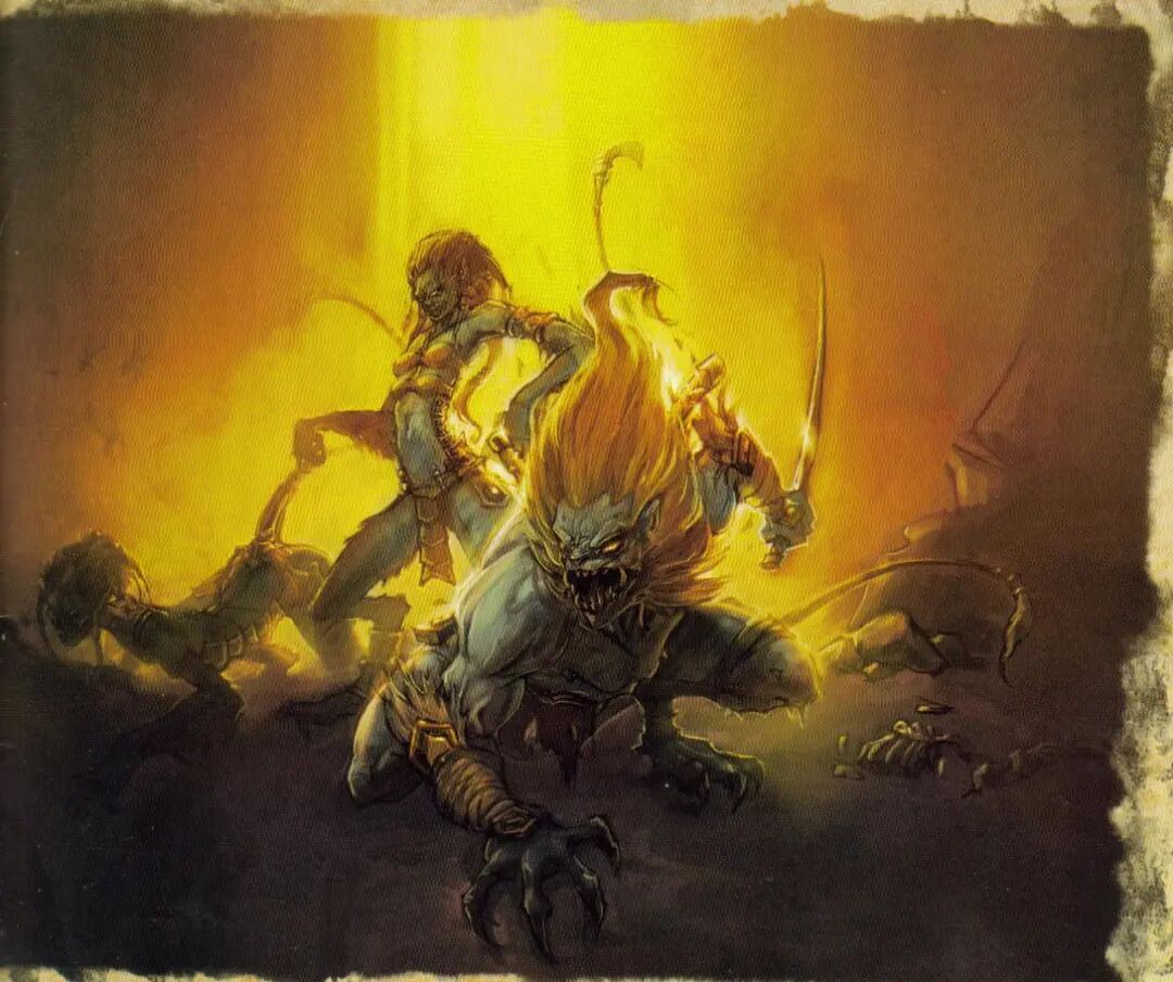 拉库尼人,也被称为黑豹人,他们已经在卡尔迪姆以东的沙漠荒地上生活了数千年。雄性是部落的首领是卫兵,雌性则是狩猎专家。最初这些野兽一直都是独来独往,过着原始又隐居的生活。但是在迪亚波罗来到这个世界后,这些动物全都变异了,更加的嗜血。