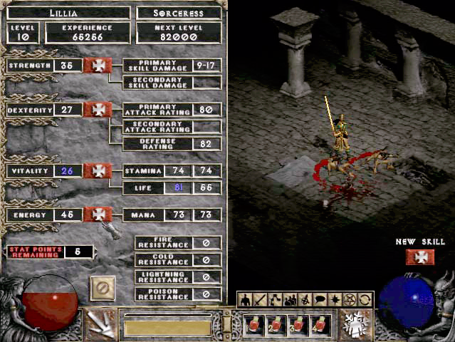 这个设定虽然在《暗黑破坏神2》中被舍弃了,但是在《刀剑封魔录》中却得到了使用。估计当年像素软件在设计刀剑时就已经发现了《暗黑2》的踢腿设定。