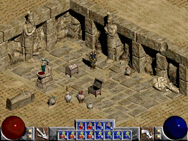 其实《暗黑破坏神2》最初延用了初代中的药水贴图,毕竟太经典了。但好在最终还是放弃了。要不然哪有现在的这么经典好看啊!
