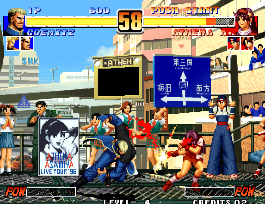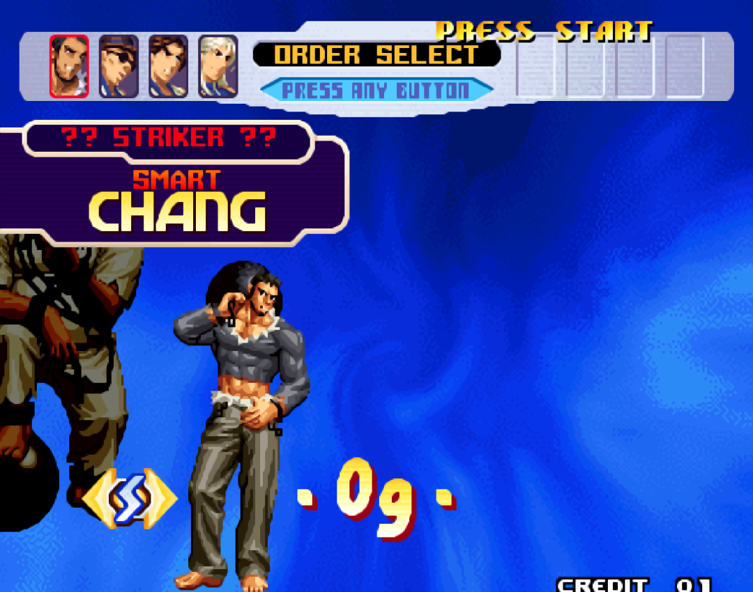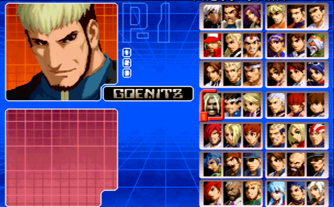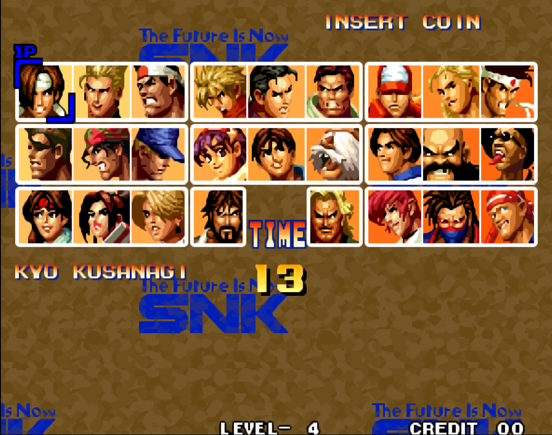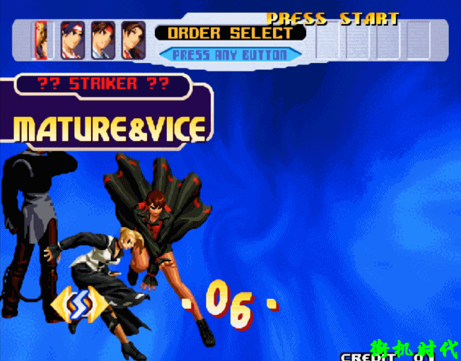 在家用机模式中,还可以选用古利查力度、塞斯、温妮莎,以及一些隐藏的援助人物。在街机平台我们最多只能选用八神庵和草薙京。