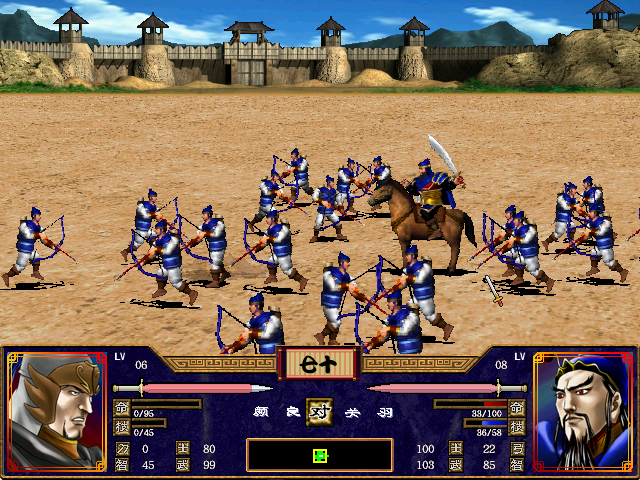 那时候大家根本不知道兵种之间的相克、队形的作用,只知道每次开局之后就全体出击,武将出击。关羽张飞刘备是重点培养对象,有什么好的武器、马匹全都装上,不过他们也比较给力,给我打了不少胜仗。