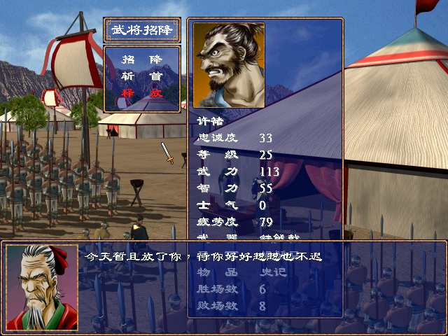 而那些看起来面目可憎的,而且武力和智力一般般,同时也没有什么名气的武将,只要招降一次没有答应就直接砍了,难得和你废话那么多。