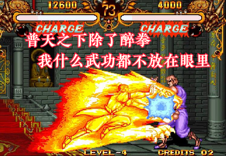 在我们熟悉的格斗游戏《世界英雄》中,来自异时空的吕布,点击ABC就可以喝酒。