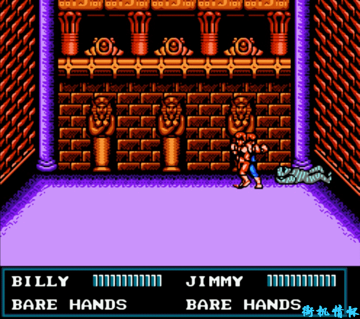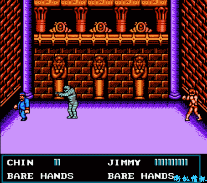 在《双截龙3》中攻击力最变态的是谁呢?没错,就是二关BOSS陈静明。要是我们使用他的爪子来对付木乃伊的话,一套就可以带走了。抓一下的威力,相当于1.5次旋风腿啊!