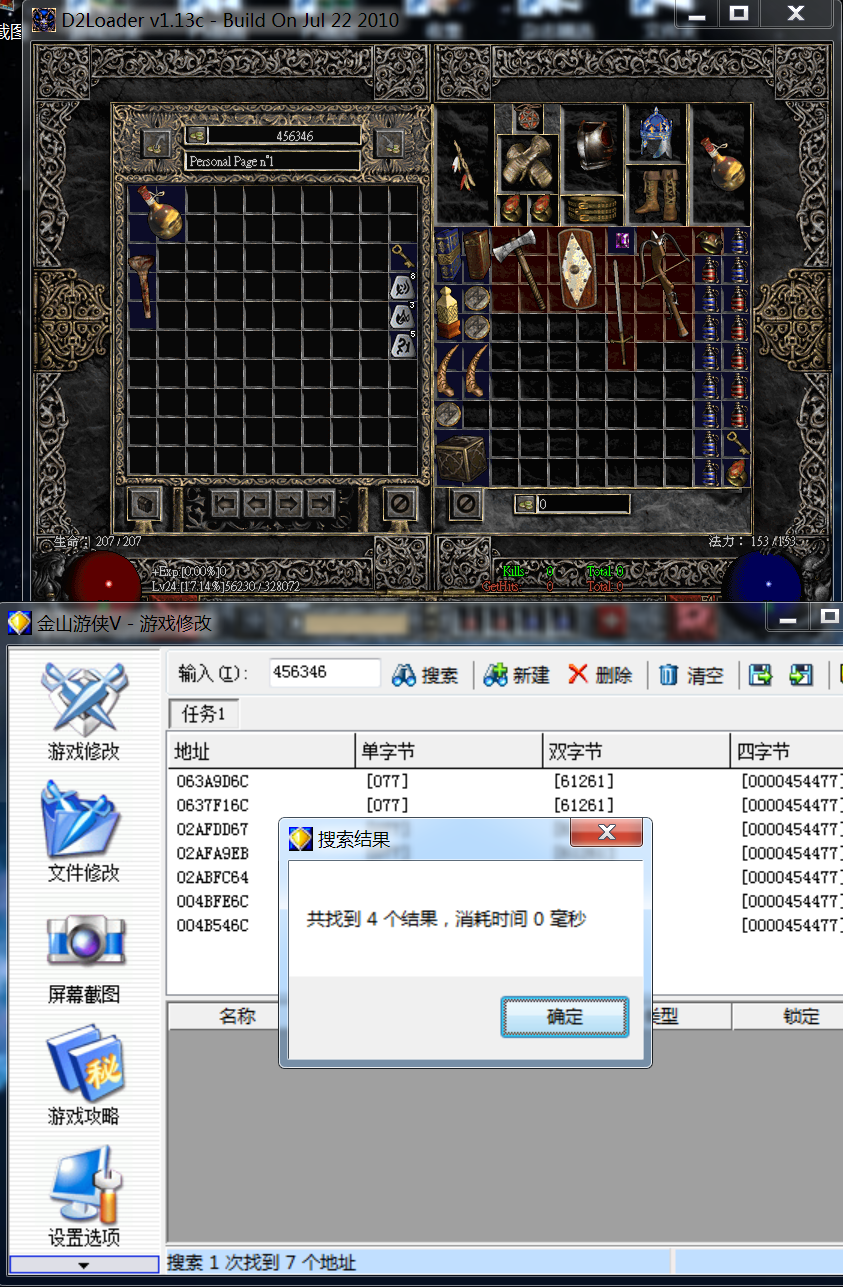 《刀剑封魔录》修改的方法很简单,将菜单栏中的指南针弄9颗,然后扔一颗搜索一次,很快就锁定了它的数据位置,然后将这个道具改成你想要的道具,像是“像素之心”、“刀剑璧”、“封魔壁”、“太极”、“无极”,甚至神秘丹、刀剑神药和刀剑天书都是可以的。