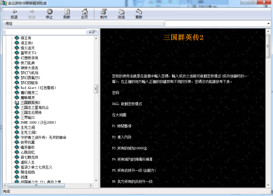 金山游侠有一个游戏百宝箱,里面的功能全都是当时比较有用的。其中包括:一键必杀、游戏录制、模拟光驱,还有一套比较齐全的游戏攻略。