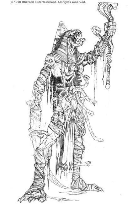 这些木乃伊生前都是最伟大的战士和法师(大部分都是赫拉迪姆成员哦!),因此才有资格葬在古墓之中,每一位都拥有天生的领导才能。墨菲斯托来到鲁高因这片大地之后,将地狱仆从的灵魂束缚在这些死者的身上,让这些已经被做成木乃伊多年的战士和法师成为活死人。