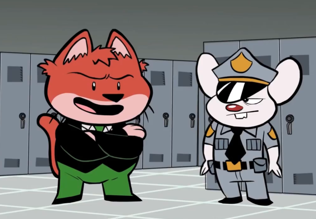 红猫并没有因为老鼠当年的追捕而拒绝他的求职,反而迫不及待地让他换上了保安的衣服。