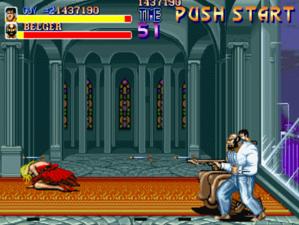 而另一边,当年被我们通关几百次的《快打旋风》也是如此,BOSS在死之前就会找一个合适地方,等待被玩家打死然后以便于配合剧情的进展。