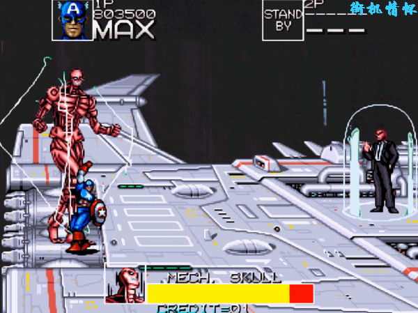 还记得当年游戏厅火爆一时的《上尉密令》,最初时候没人可以通关,在发现无敌窍门之后每天都有好几个人可以直接通关。因此我们见得最多的画面就是红骷髅被巨大的机器人砸死的场面。