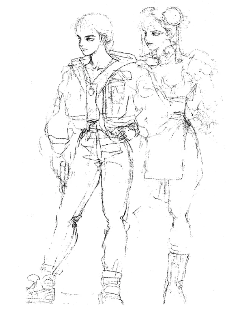 在画集的那些花絮中,我们可以看到不少的草稿。这都是曾经人物设计的初稿。当年设计出来的人物有好几十个,但只有那么12位幸运儿能和玩家们见面。